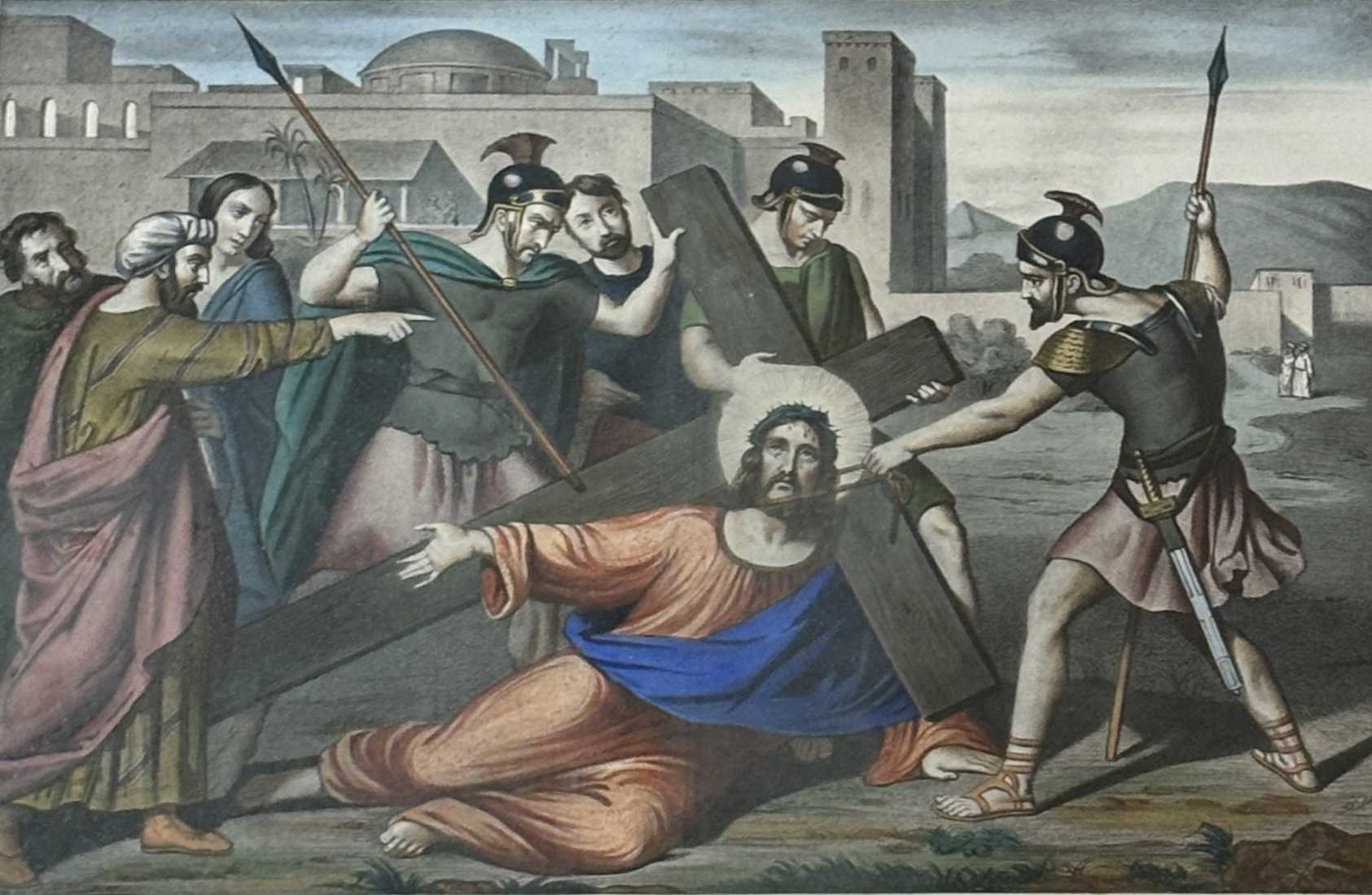 5e station : Simon de Cyrène aide Jésus à porter sa croix. |