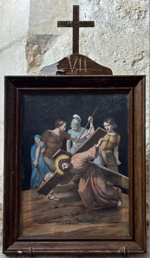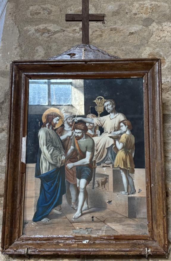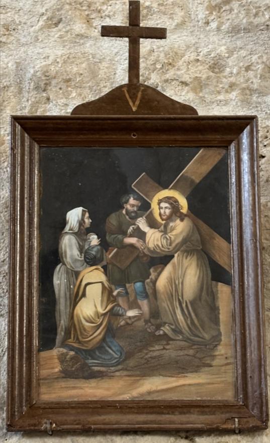 5e station : Simon de Cyrène aide Jésus à porter sa croix. |