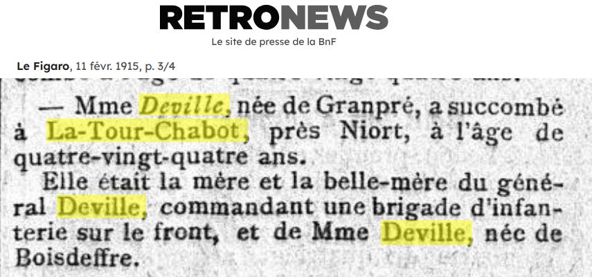 FAMILLE S DEVILLE ET DE GRANDPRE |