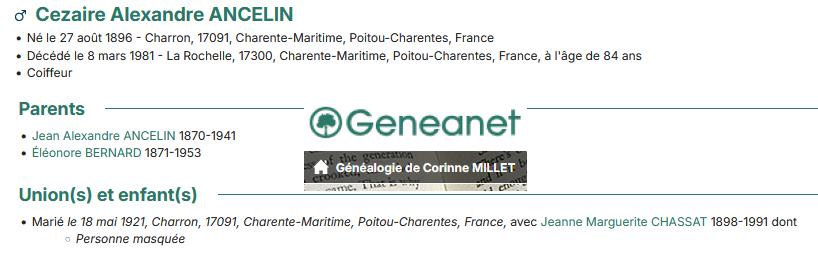 FAMILLE ANCELIN – CHASSAT – ALEXANDRE 1896 – 1981 JEANNE ANCELIN NEE CHASSAT 1898 – 1991 – ANCELIN YVON 1924 - 2005 |