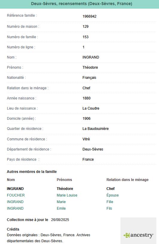 née le 02 septembre 1878 à ST MARTIN LES MELLE