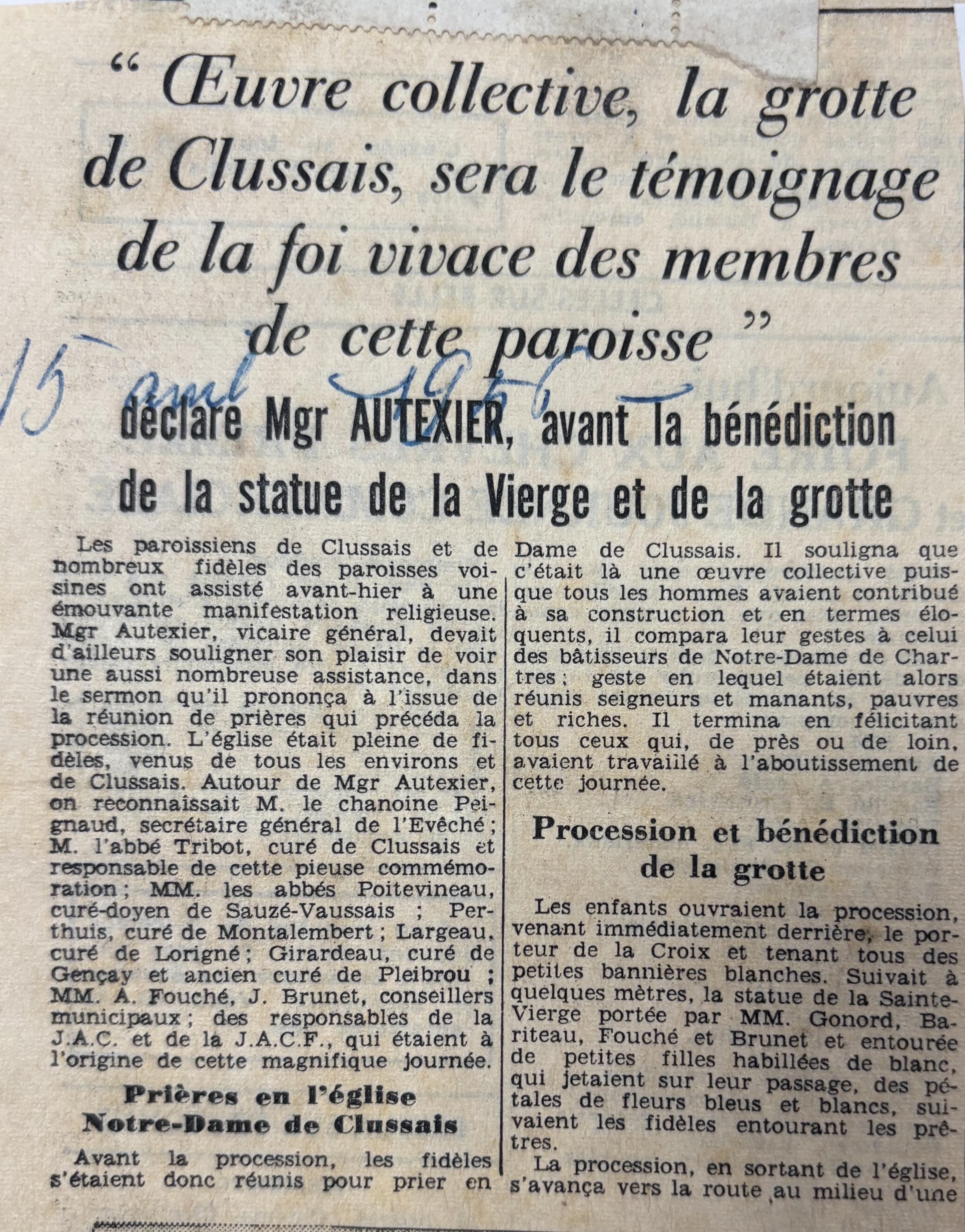 Article de presse du Avril