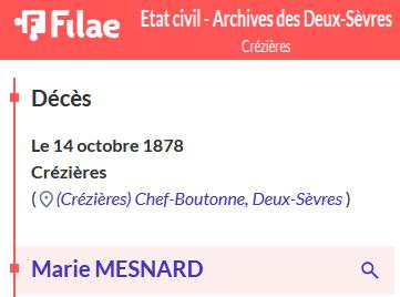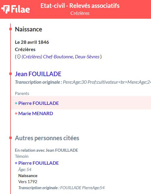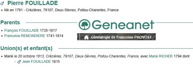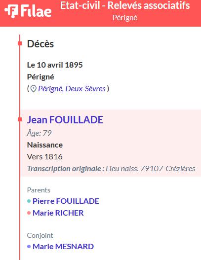Leur fils FOUILLADE Jean né le 20/08/1815 à CREZIERES s'est marié avec Marie MENARD |
