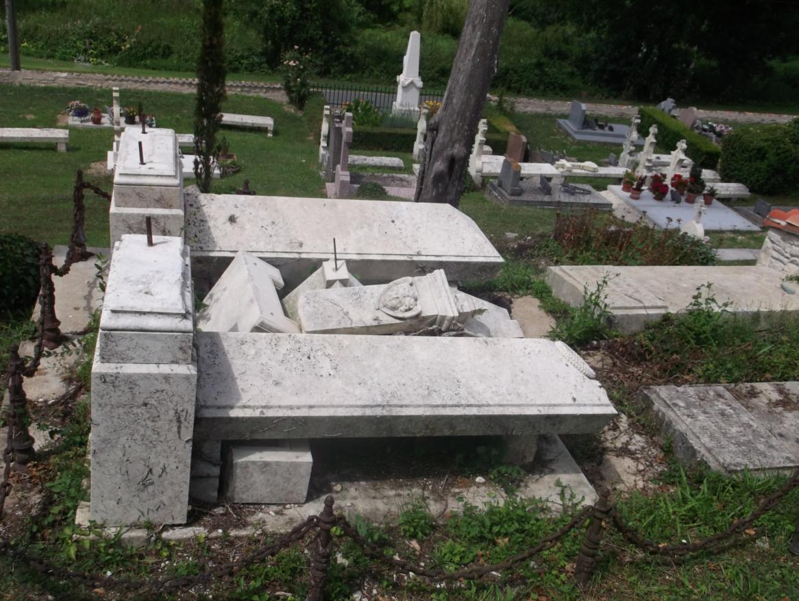 Juste à côté de la croix de cimetière qui s'est effondrée dessus ==>> |