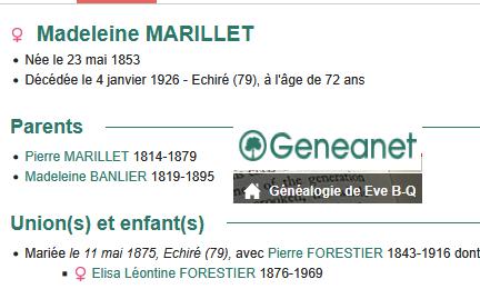 Louise MARILLET (1853/1926) veuve FORESTIER |