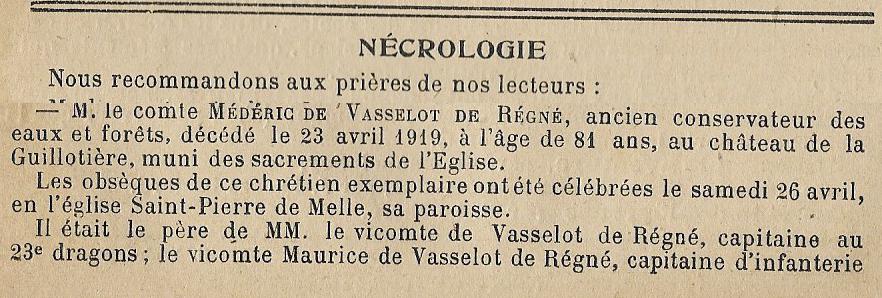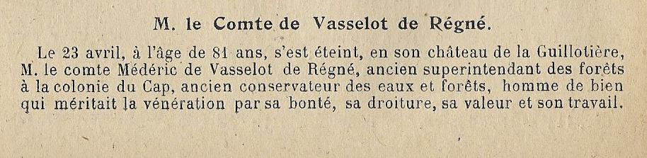MEDERIC COMTE DE VASSELOT DE REGNE 4 AOUT 1837 – 23 AVRIL 1919