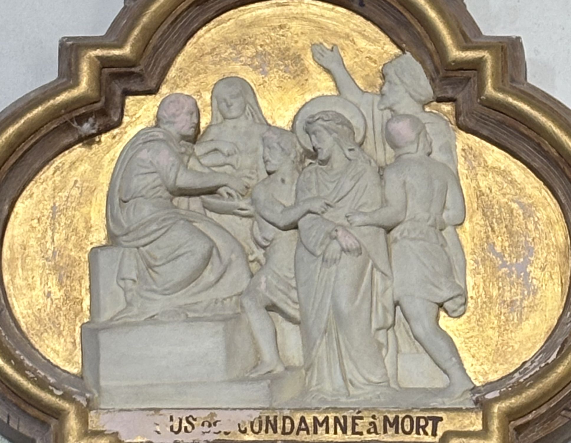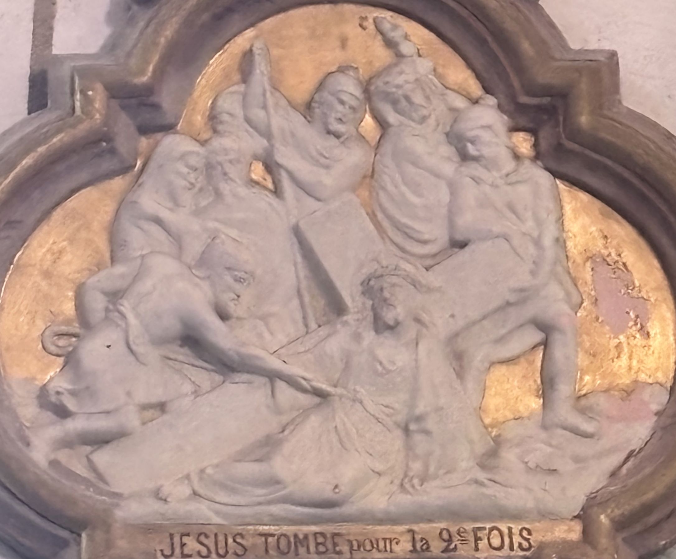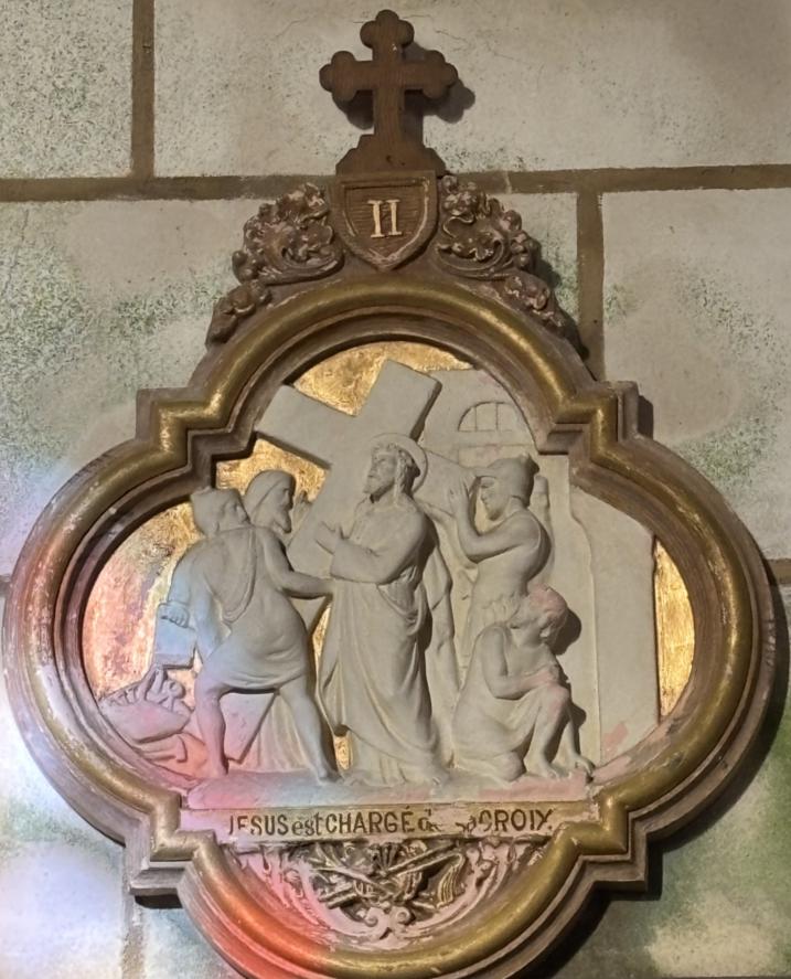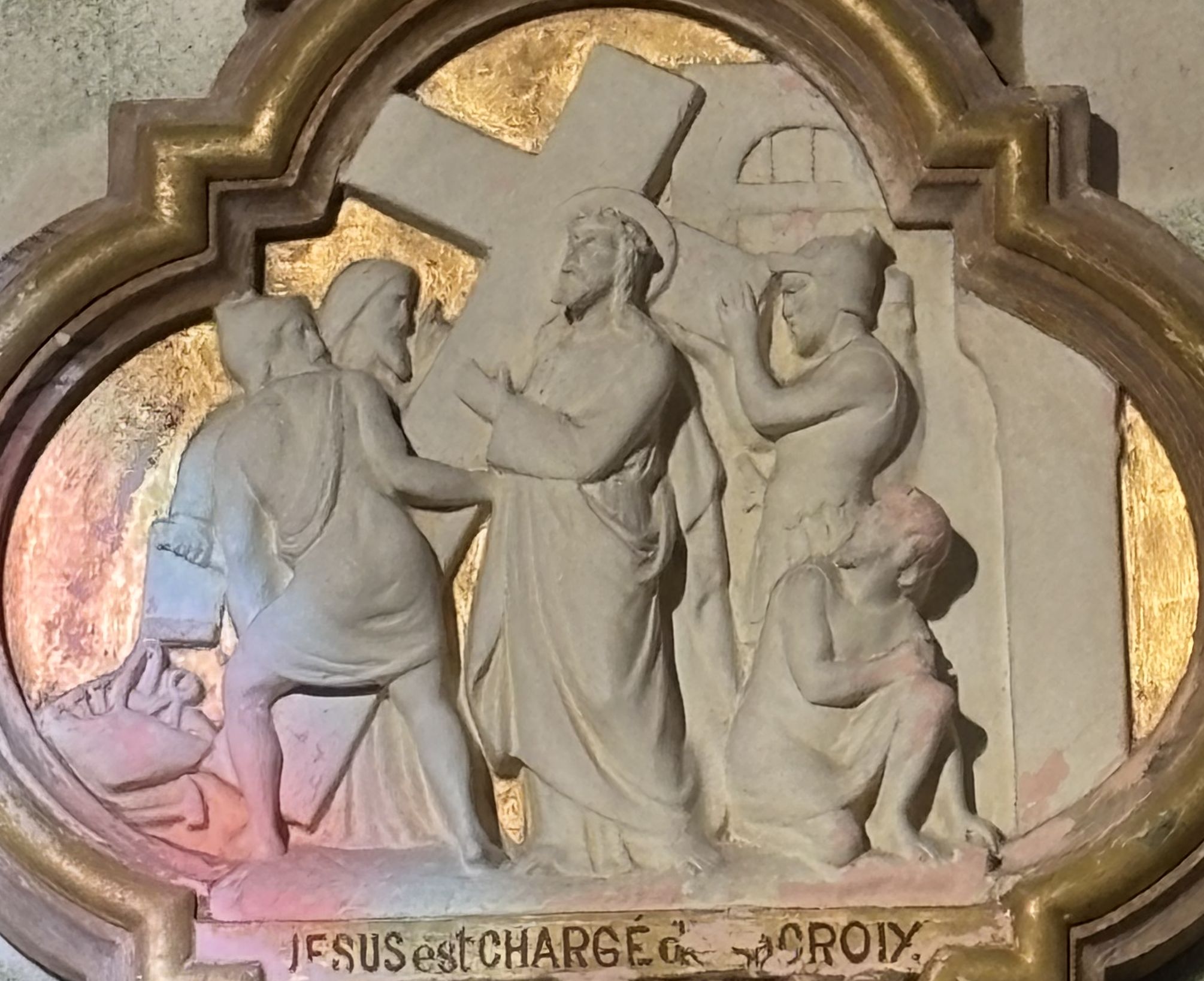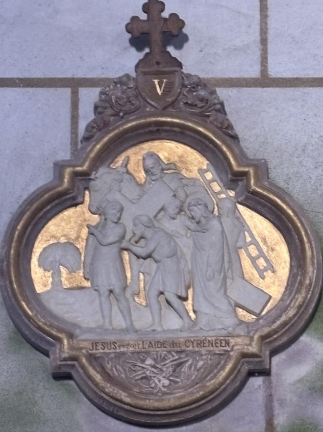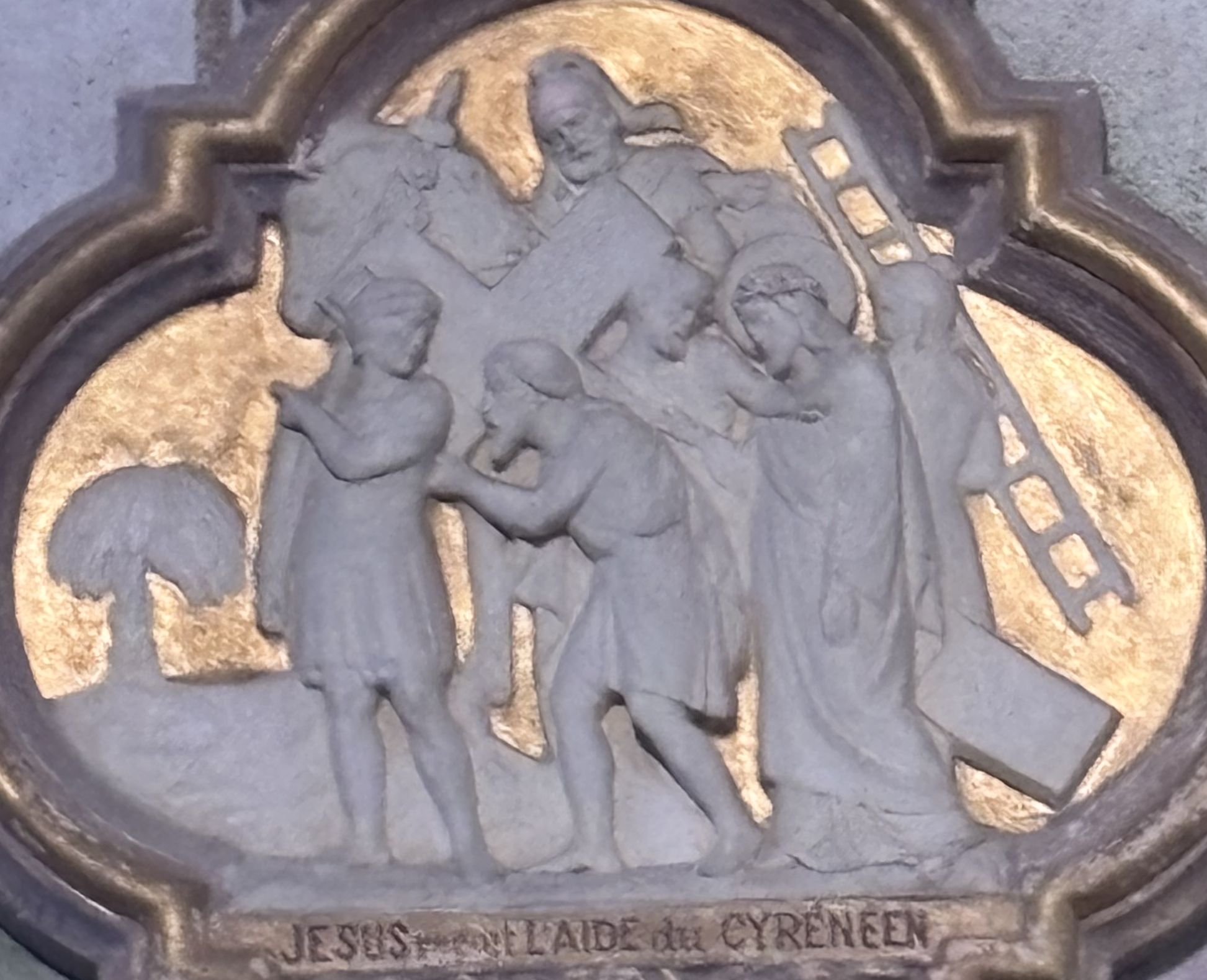 5e station : Simon de Cyrène aide Jésus à porter sa croix. |