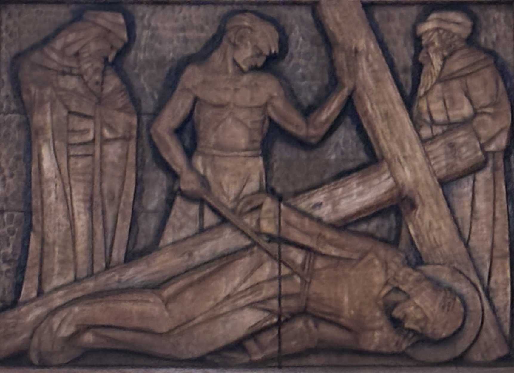 5e station : Simon de Cyrène aide Jésus à porter sa croix. |