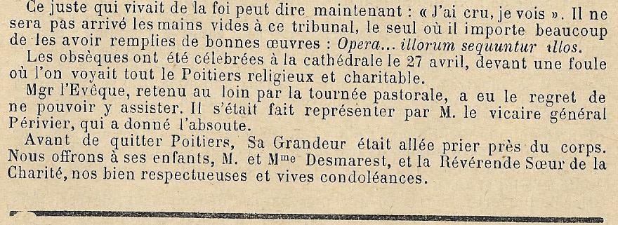 DCD en sa demeure 40 Rue du Lycée à POITIERS (86) épouse de Constant PIARD ancien notaire