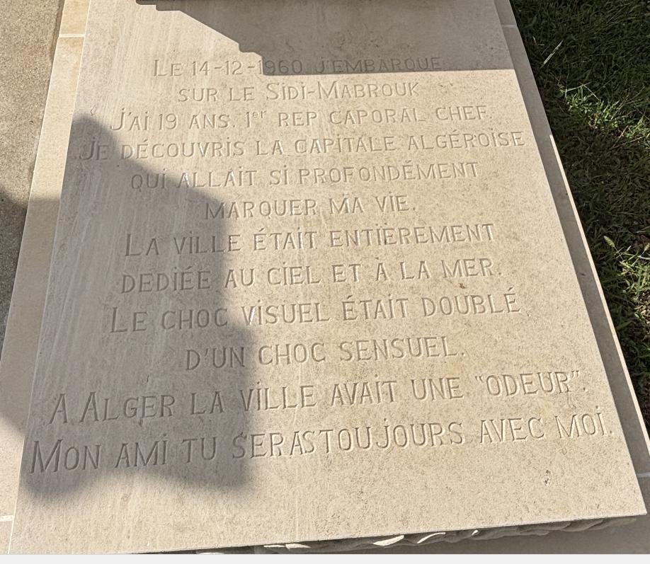 LE 14-12-1960 J'EMBARQUE SUR LE SIDI-MABROUK J'AI 19 ANS. 1er REP CAPORAL CHEF JE DECOUVRE LA CAPITALE ALGEROISE QUI ALLAIT SI PROFONDEMENT MARQUER MA VIE. LA VILLE ETAIT ENTIEREMENT DEDIEE AU CIEL ET A LA MER LE CHOC VISUEL ETAIT DOUBLE D'UN CHOC SENSUEL A ALGER LA VILLE AVAIT UNE « ODEUR » MON AMI TU SERAS TOUJOURS AVEC MOI. |