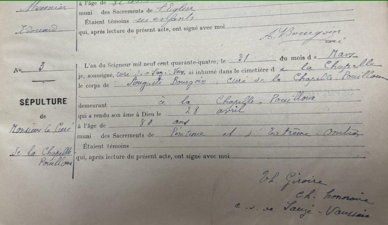 dans les archives de la paroisse de LA CHAPELLE POUILLOUX