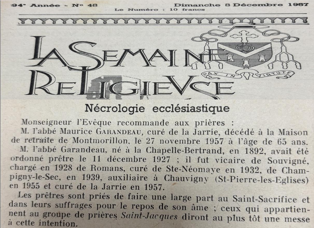 Abbé GARANDEAU Maurice (1892/1957) |