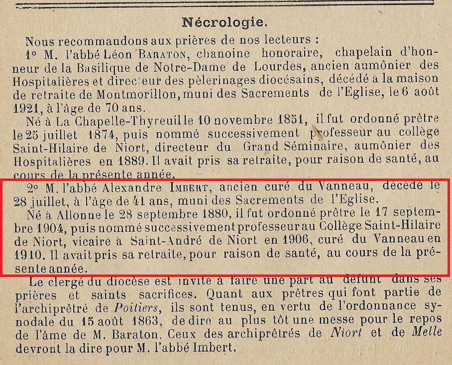 Abbé IMBERT Pierre (1880/1921) |