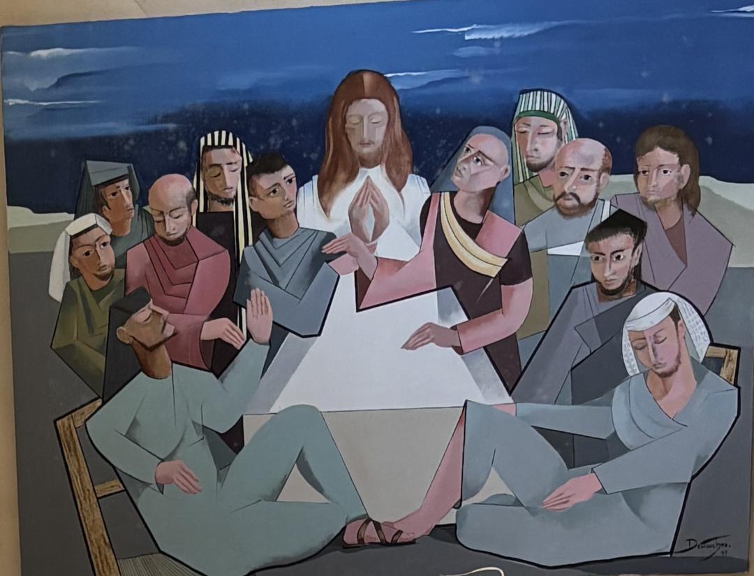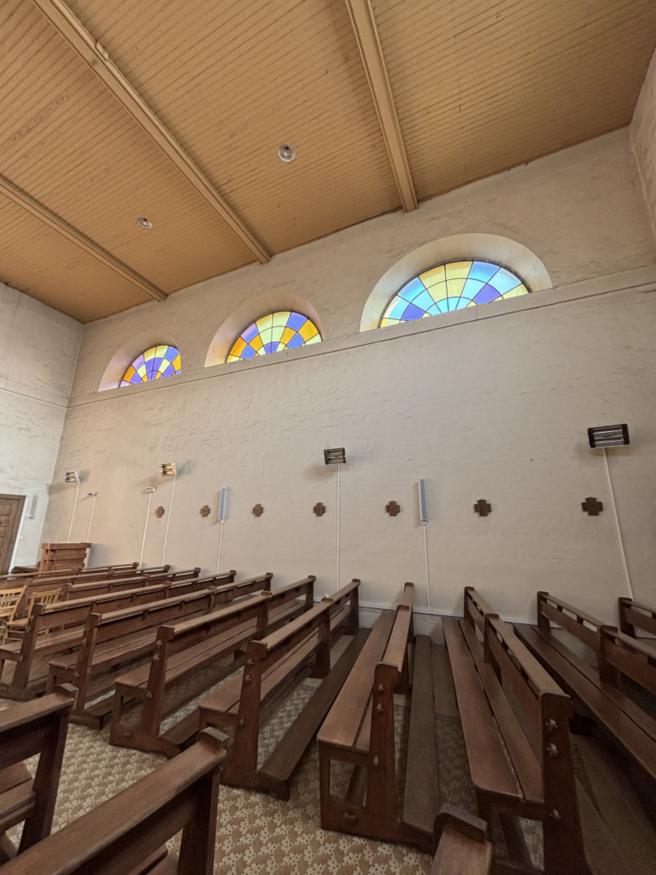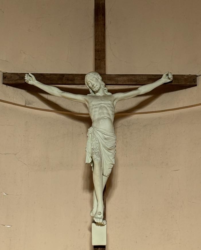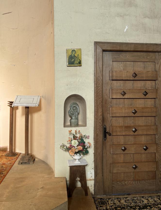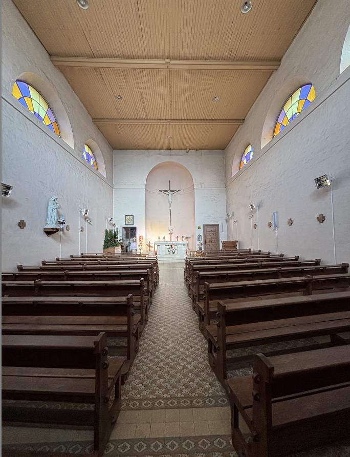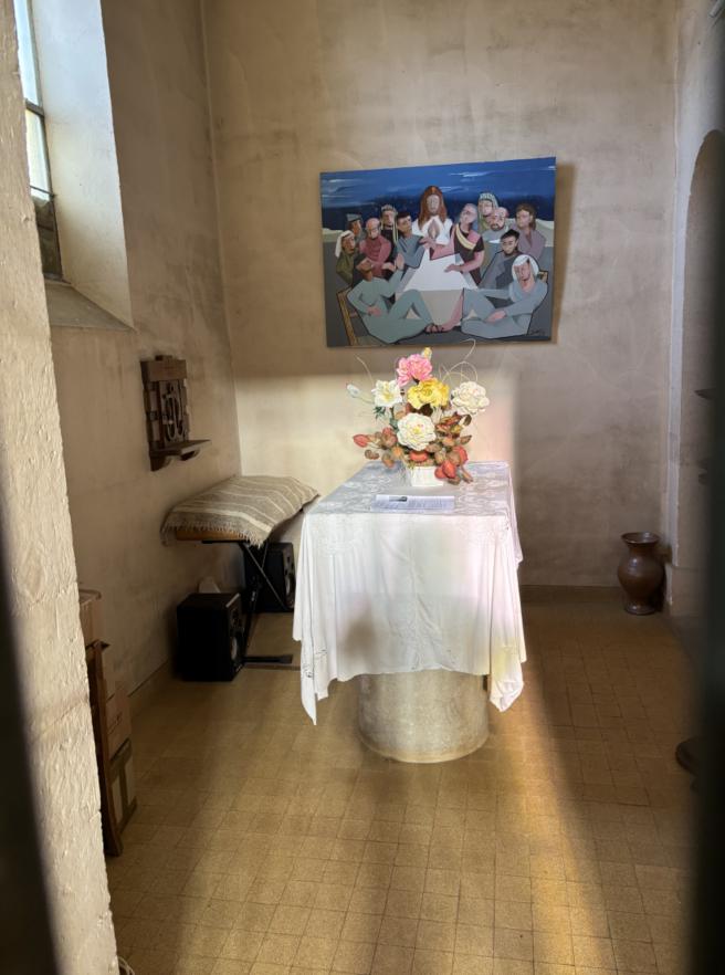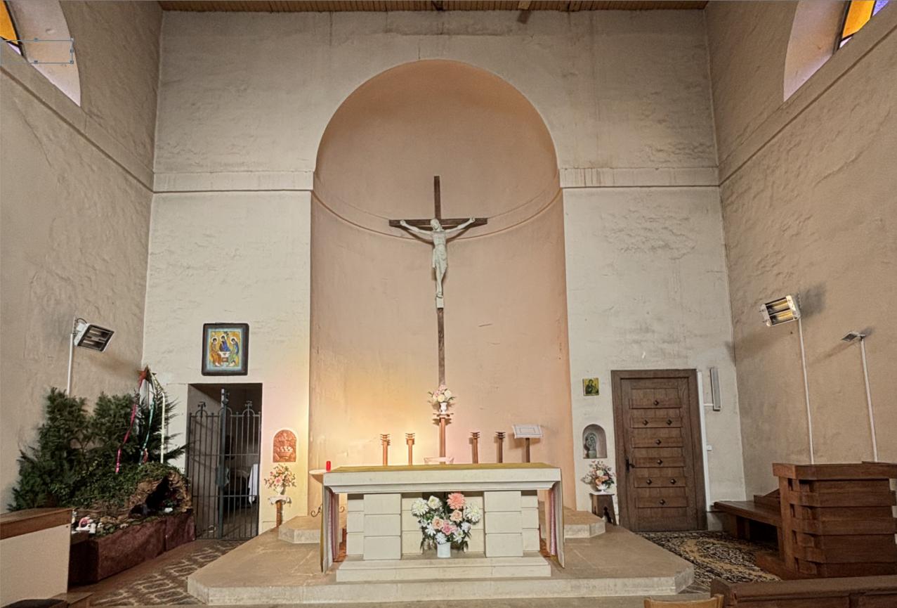 La crêche 2025 installée à l'entrée des fonds baptismaux