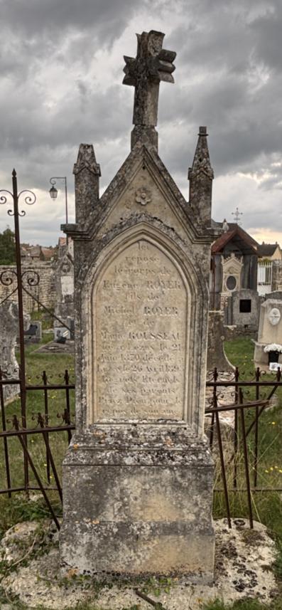 Ici repos le corps de Eugène ROYER fils de Michel ROYER et de Marie ROUSSEAU né à Lezay le 21 Juin 1870 décédé à Lezay le 26 Avril 1895 Regrets Eternels de ses parents |