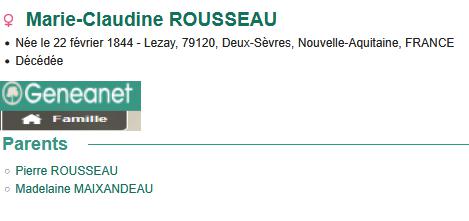 Ici repose le corps de Célestine ROYER fille de Michel ROYER et de Marie ROUSSEAU née à Lezay le 1er 7BRE 1867 décédée à Lezay le 27 8BRE 1897 – Regrets éternels de ses parents |