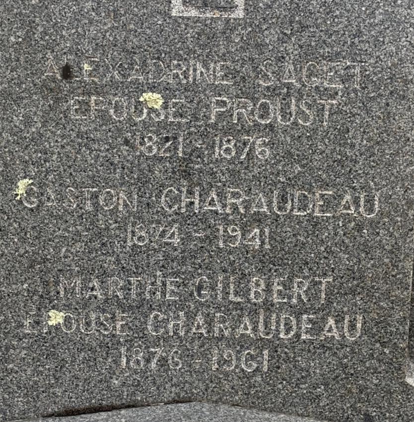 ALEXANDRINE SAGET EPOUSE PROUST 1821 – 1876 GASTON CHARAUDEAU 1874 – 1941 MARTHE GILBERT EPOUSE CHARAUDEAU 1876 - 1961 |