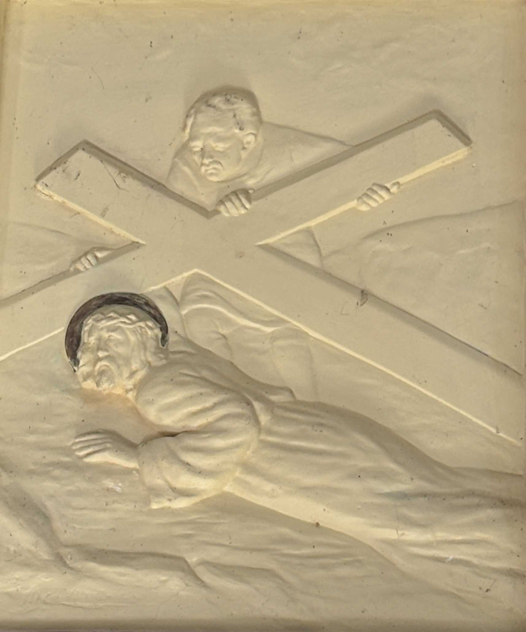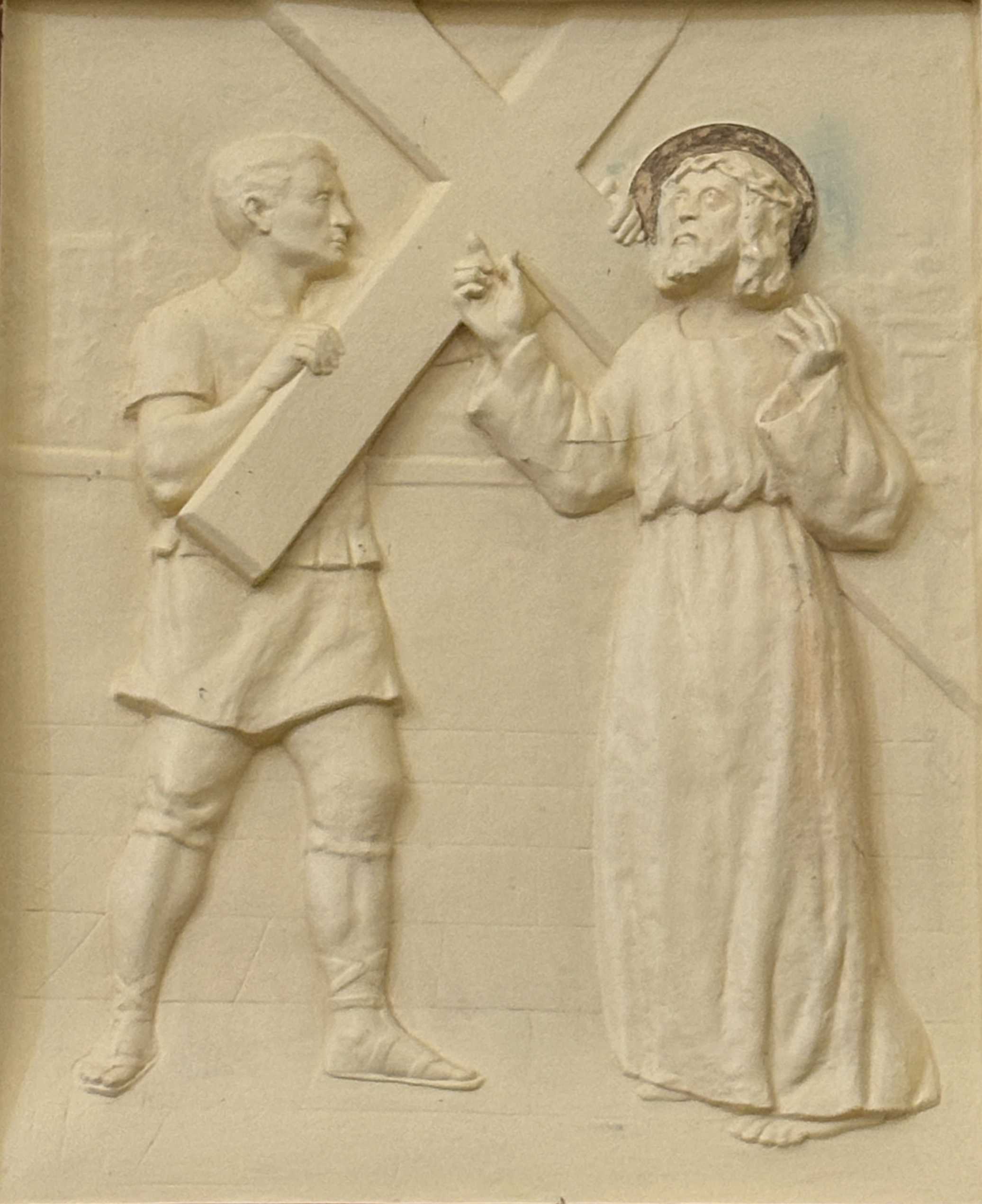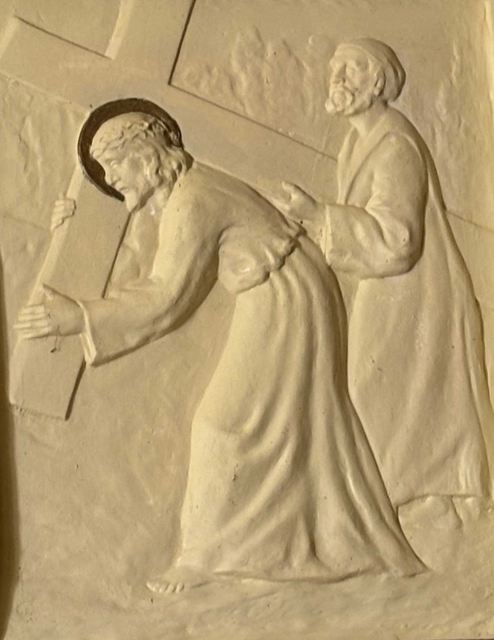 5e station : Simon de Cyrène aide Jésus à porter sa croix. |