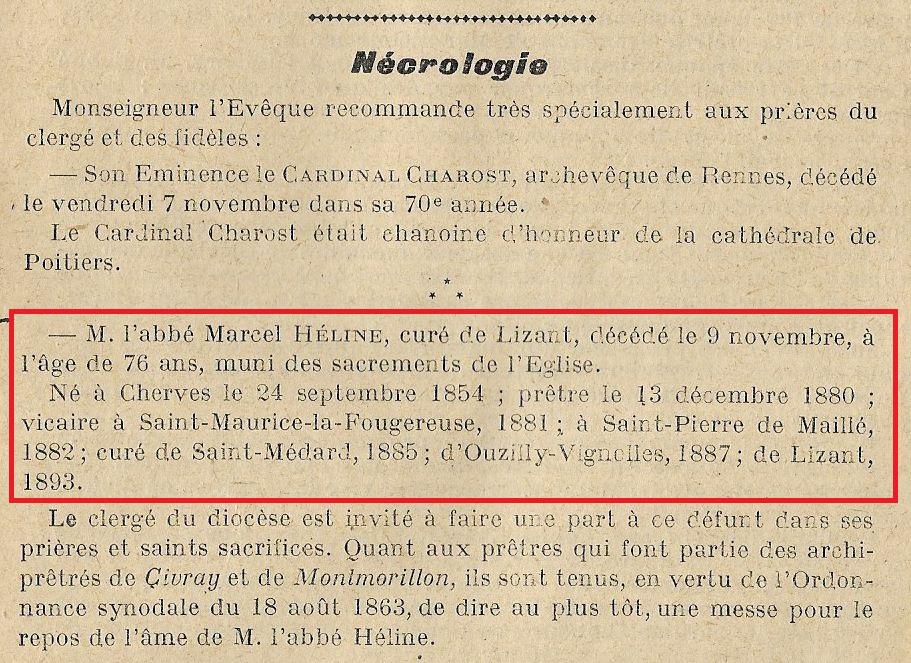 Abbé DOUSSAINT François (1811/1867) Abbé HELINE Marcel (1854/1930) |