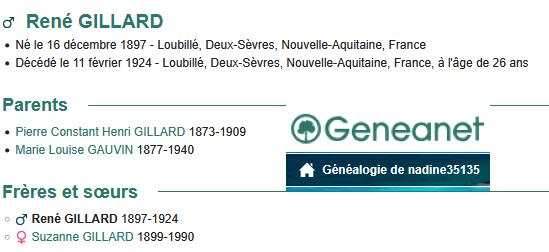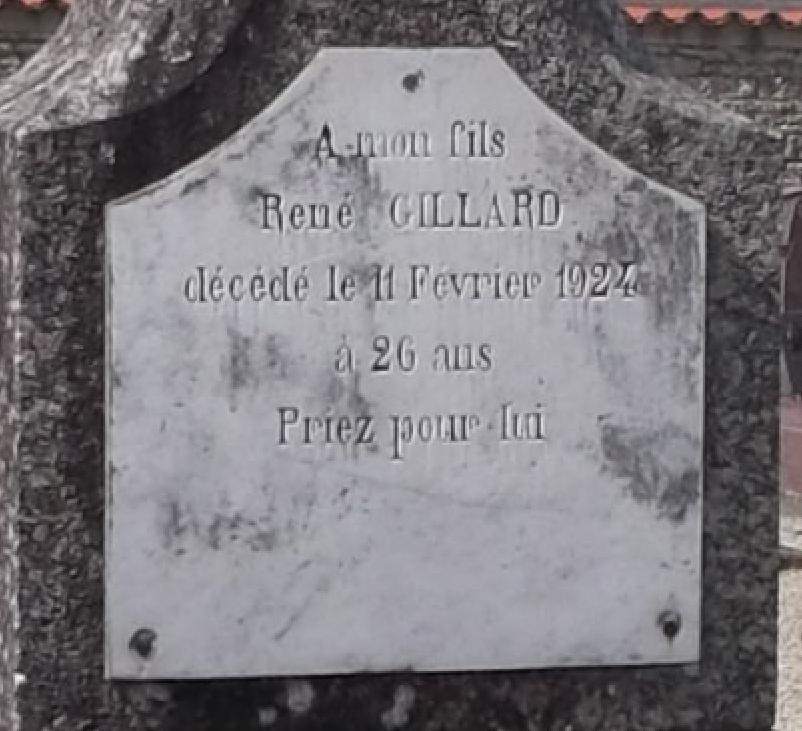 A mon fils René GILLARD décédé le 11 Février 1924 à 26 ans |