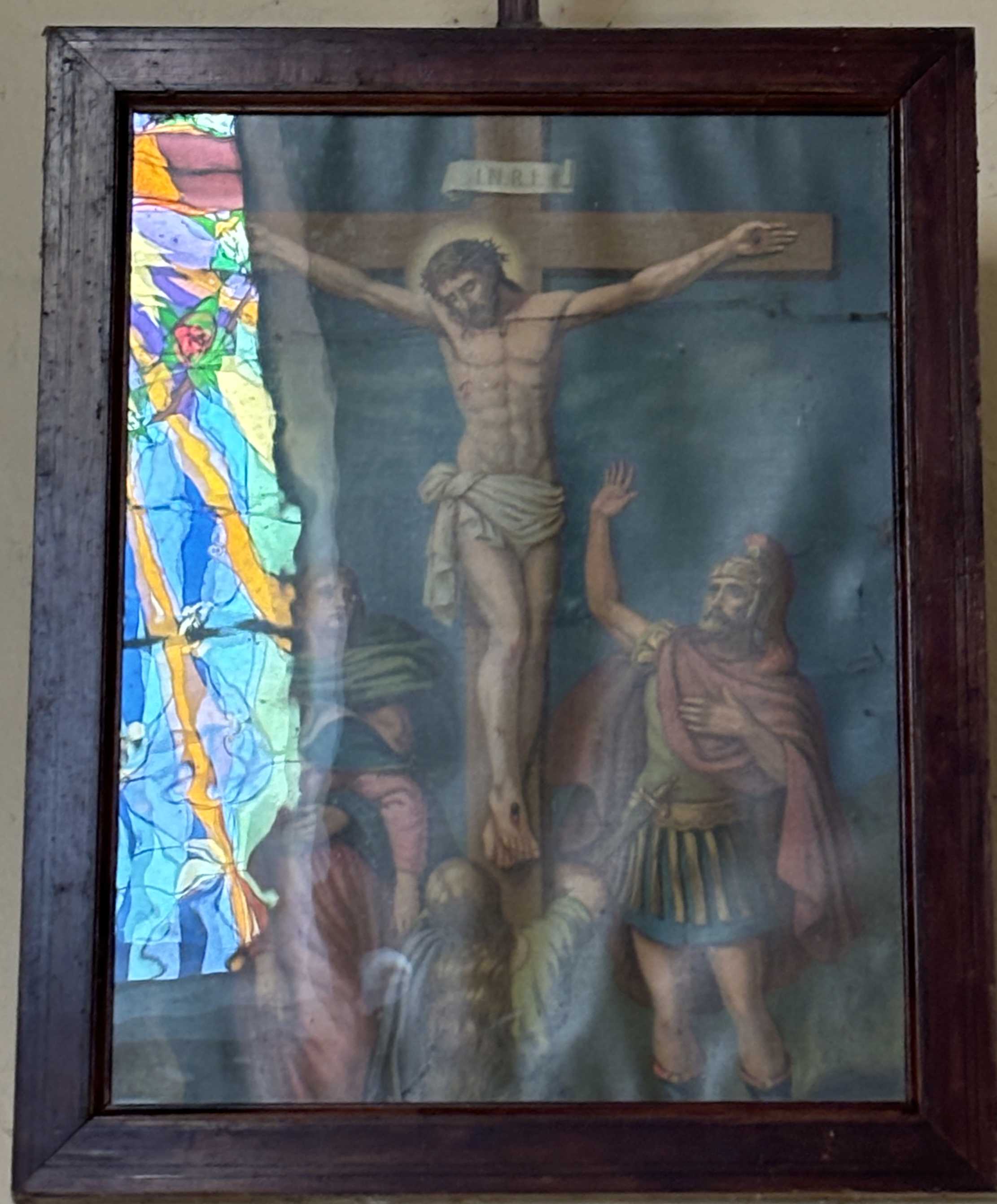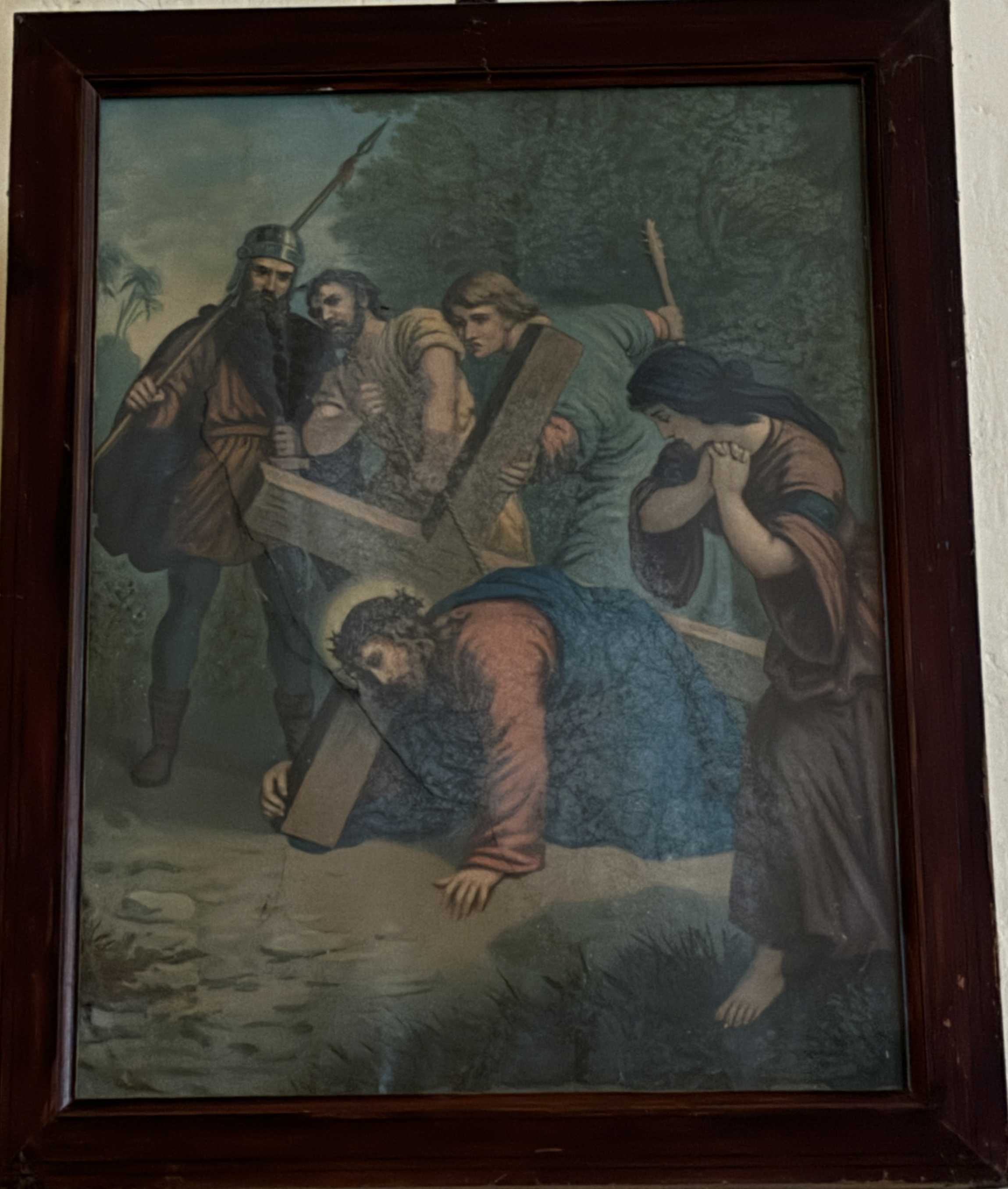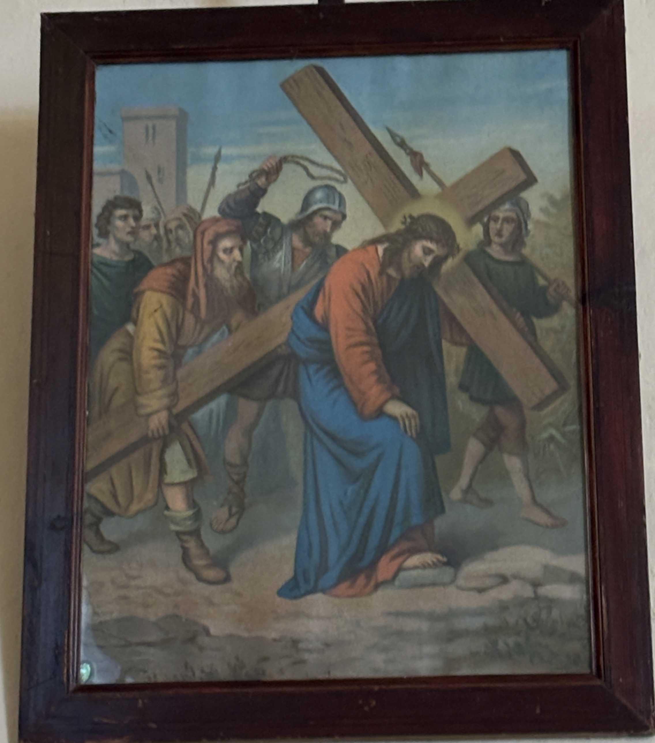5e station : Simon de Cyrène aide Jésus à porter sa croix. |