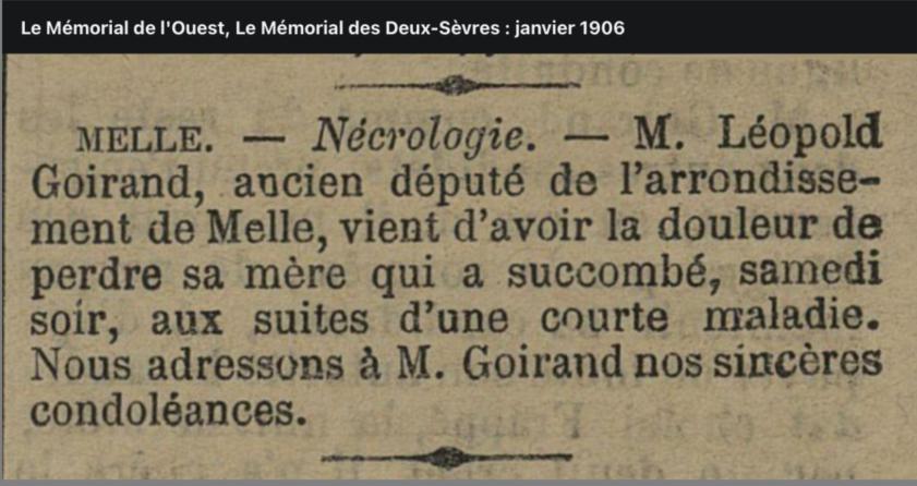 DCD le 06/01/1906 à MELLE