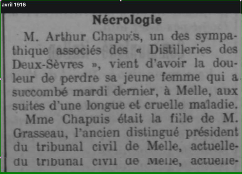 FAMILLE GRASSEAU Zélia GRASSEAU . 16 avril 1903 . 68 ans Andrée GRASSEAU épouse de Arthur CHAPUIS 25 avril 1916 30 ans Charlotte BOURSIER épouse de André GRASSEAU Conseiller à la Cour 15 Septembre 1937, 79 ans André GRASSEAU Chevalier de la Légion d'Honneur Conseiller à la Cour d'Appel 28 -1-1946