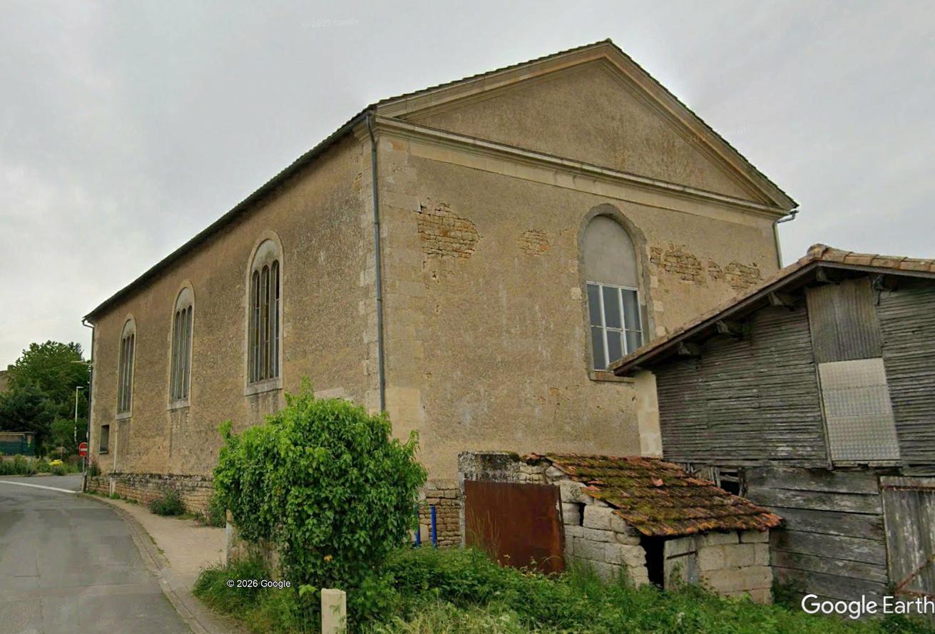 Historique : construit vers 1830, agrandi et amélioré de 1837 à 1841. Le temple est aujourd'hui une salle municipale.