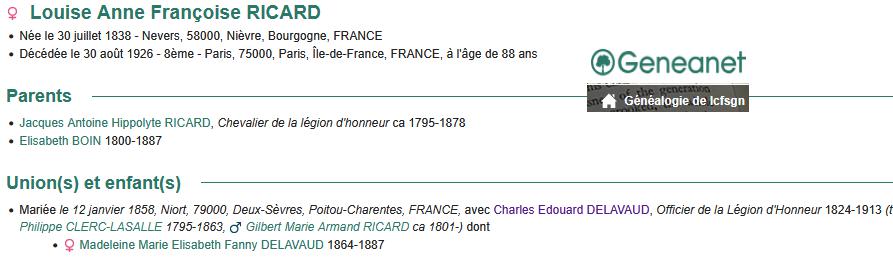 MARGUERITE PERIA 1804 – 1884 – LOUISE ANNE FRANCOISE RICARD VEUVE DE CHARLES DELAVAUD PHARMACIEN …. DE LA MARINE 1836 - 1928 |