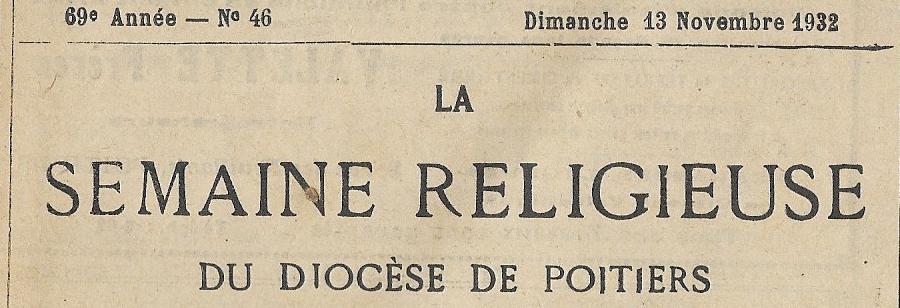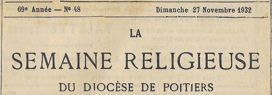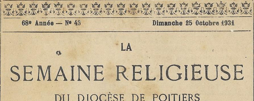 Manque le N° 19/1931 de la semaine religieuse de Poitiers concrnant les Nocs d'or de Mr e Chanoine CLUZEAU |