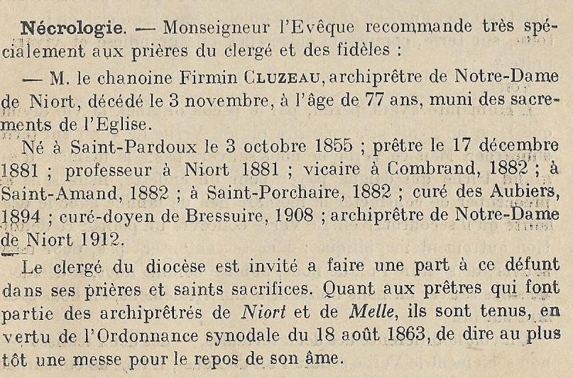 Chanoine CLUZEAU Firmin (1855/1932) |
