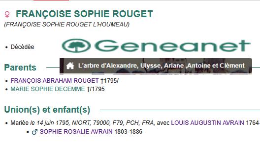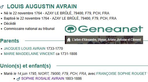 Charles Augustin AVRAIN 13 ans 7 Novembre 1813 – Sophie Rouget LHOUMEAU Dame AVRAIN 70 ans 7 Juillet 1845 – Louis Augustin AVRAIN 80 ans 4 Octobre 1845 – |