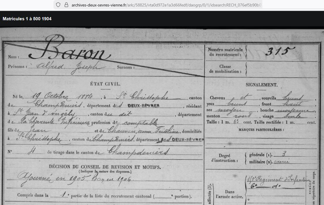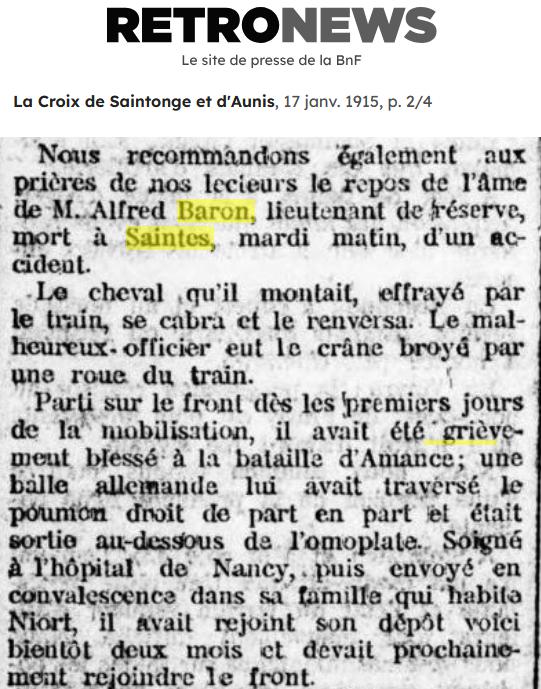 Lieutenant BARON Alfred (1884/1915) |