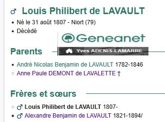 LOUIS PHILIBERT de LAVAULT 72 ans 19 Octobre 1879