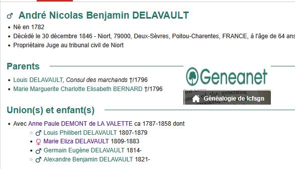 MARIE ELISABETH de LAVAULT, épouse d'AUGUSTIN LEJUSTE décédée ….