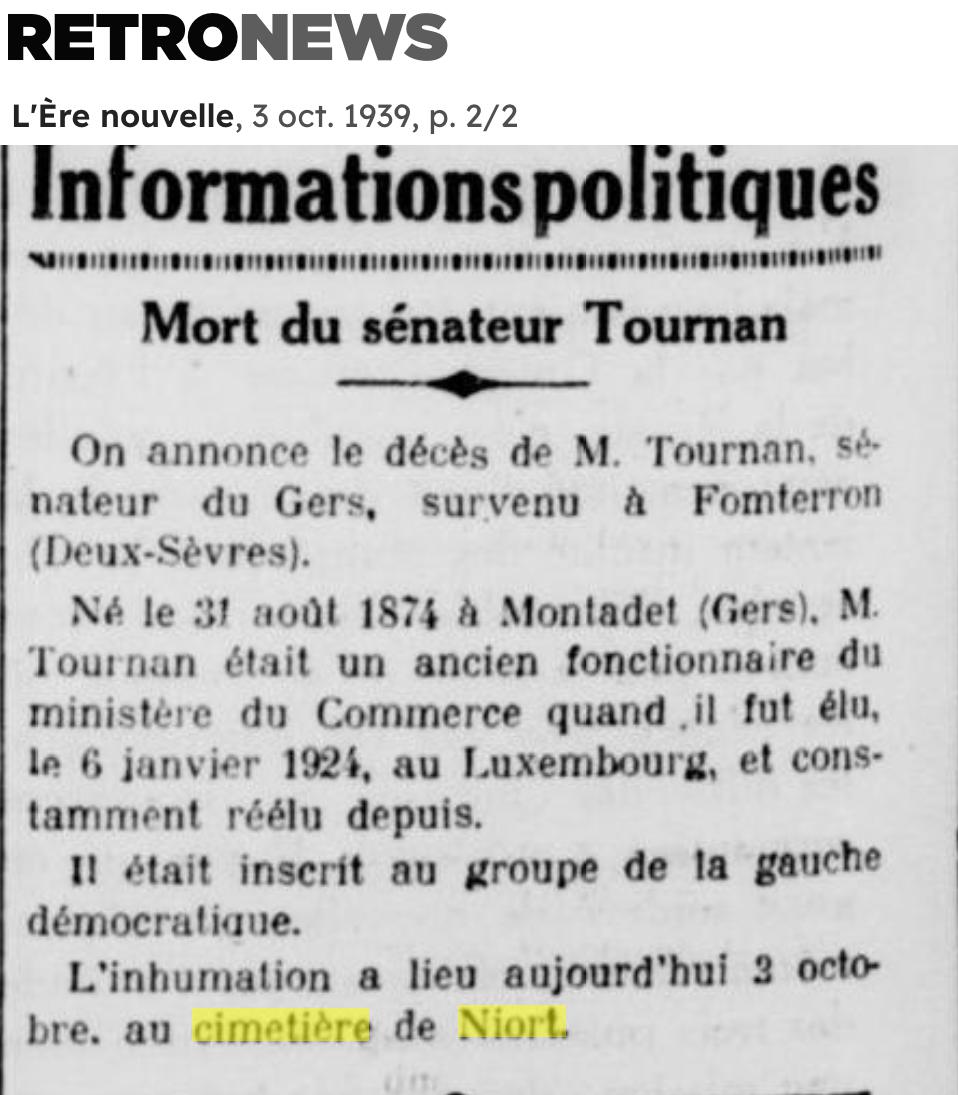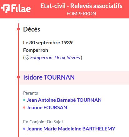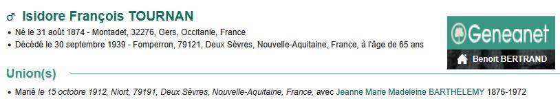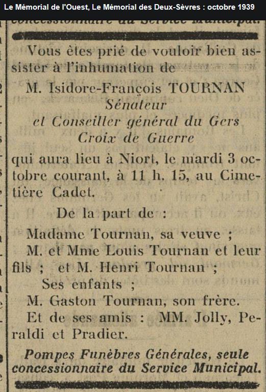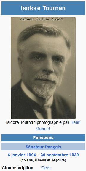 Isidore Tournan, né le 14 août 1874 à Montadet (Gers) et mort le 30 septembre 1939 à Fomperron (Deux-Sèvres), est un homme politique français. |