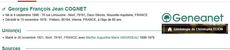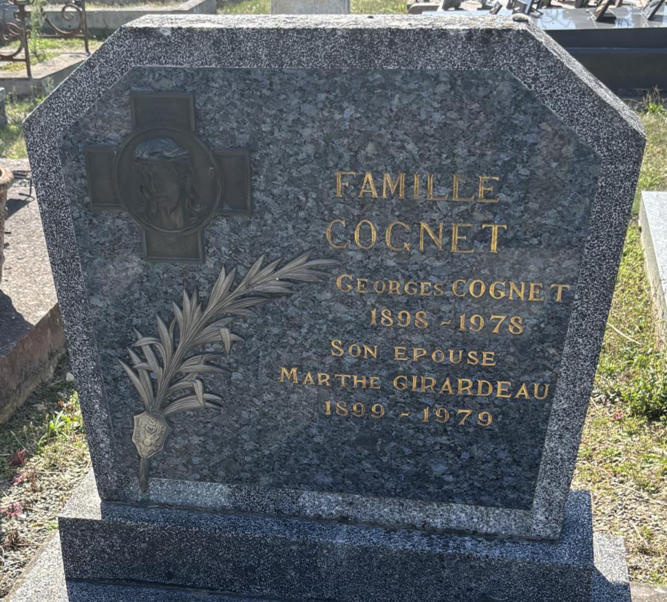 COGNET GEORGES COGNET 1898 – 1978 SON EPOUSE MARTHE GIRARDEAU 1899 - 1979 |