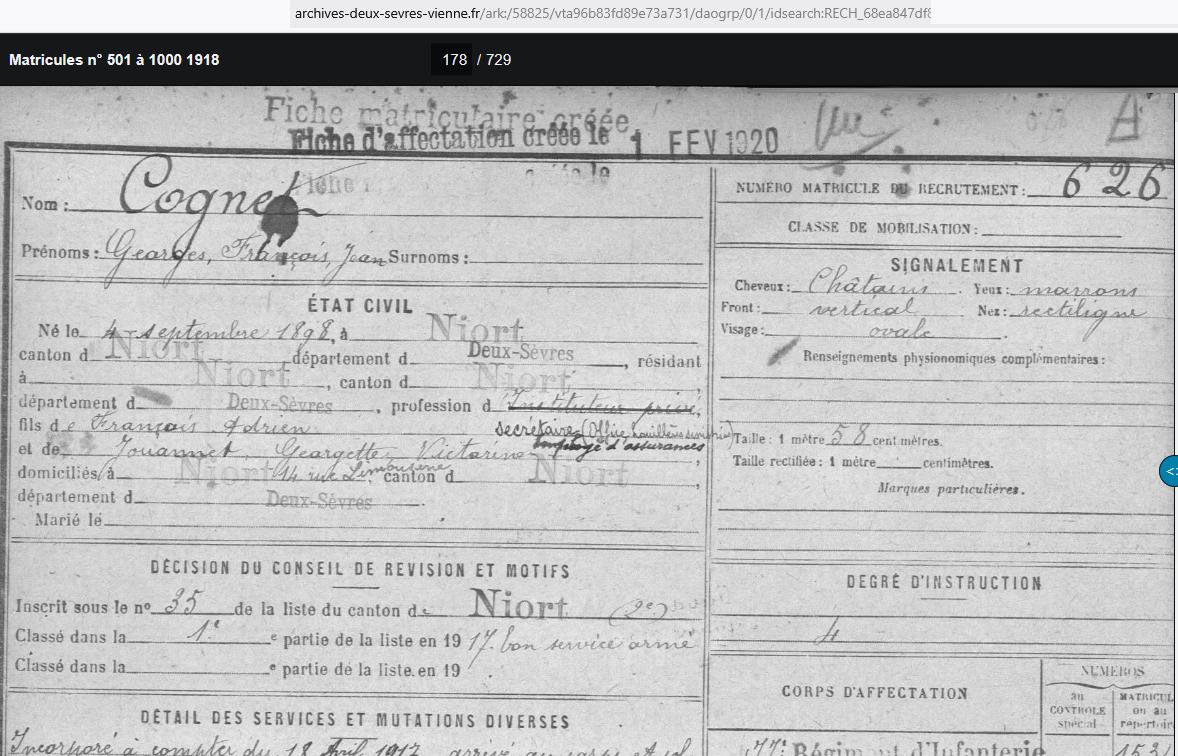 GEORGES COGNET 1898 – 1978 DON EPOUSE MARTHE GIRARDEAU 1899 - 1979