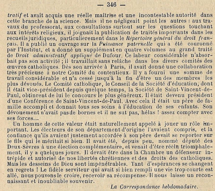 Né le 1er décembre 1834 - Parthenay (Deux-Sèvres) Décédé le 15 mai 1915 - "rue St-Laurent" Parthenay (Deux-Sèvres), à l'âge de 80 ans Avocat
