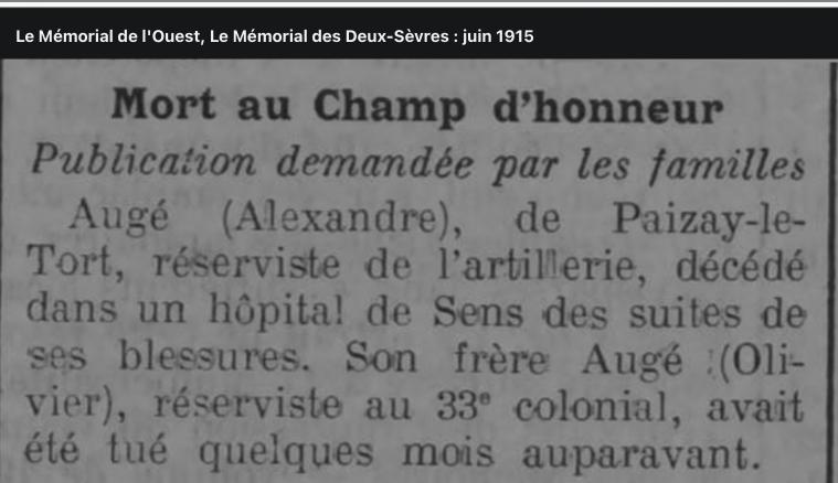 AUGER Alexandre 29-07-1884 79 - DEUX-SEVRES