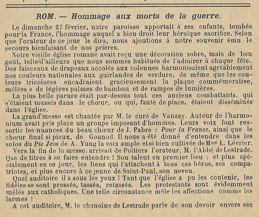 l'Abbé POINT Edgard (1874/1947) a été curé de ROM