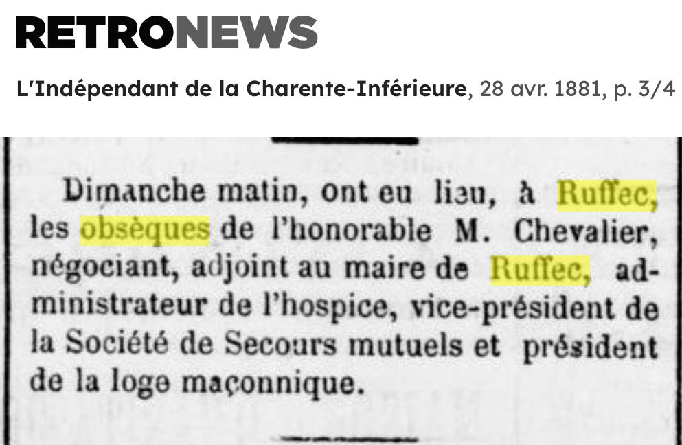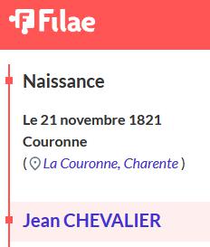 59 ans né le 21/11/1821 à LA COURONNE (16) |