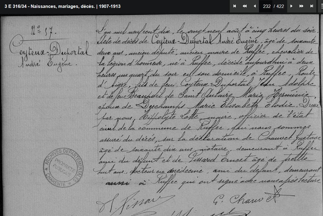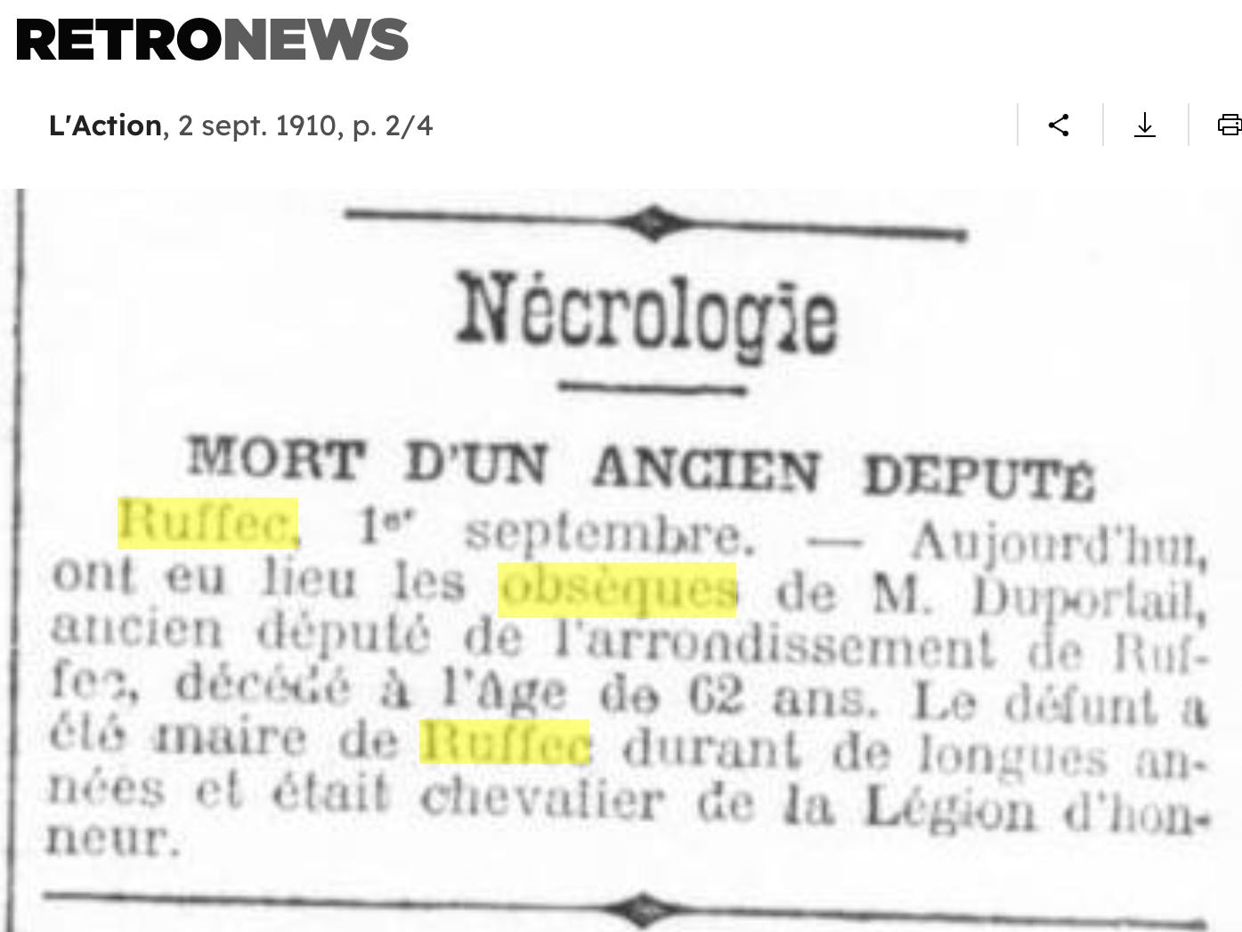 Est inhumé dans cette chapelle du cimetière de RUFFEC (16) ===>> |