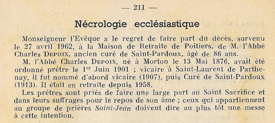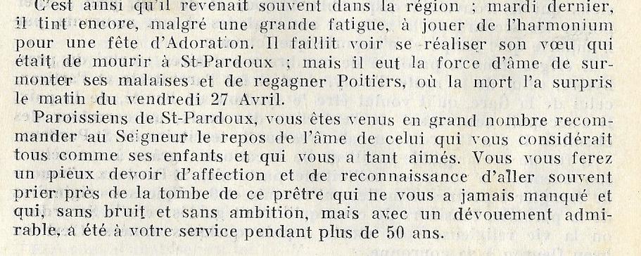 1876-1962 CURE DE ST PARDOUX 1907-1958 – PRIEZ POUR LUI |
