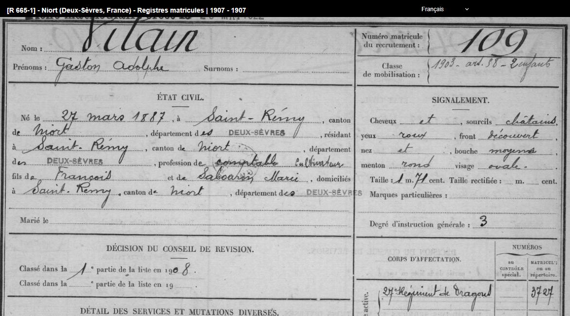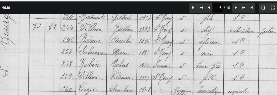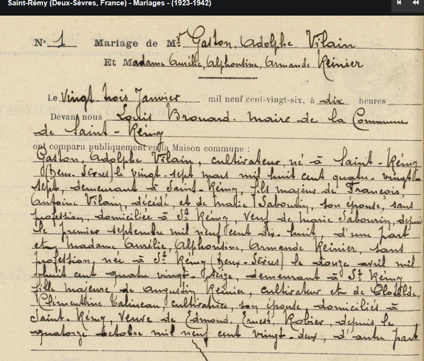 A été mariée un an entre 1921 et 1922 avec ROBIER Edmond (DCD en 1922) s'est remariée le 23/01/1926 avec VILAIN Gaston |