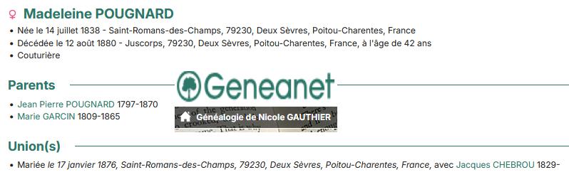 Madeleine POUGNARD (1838/1880) |