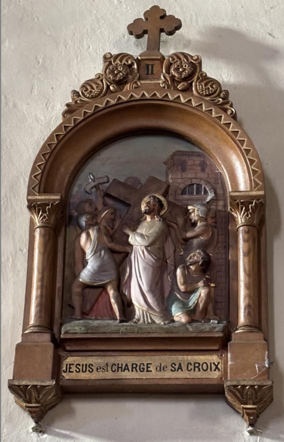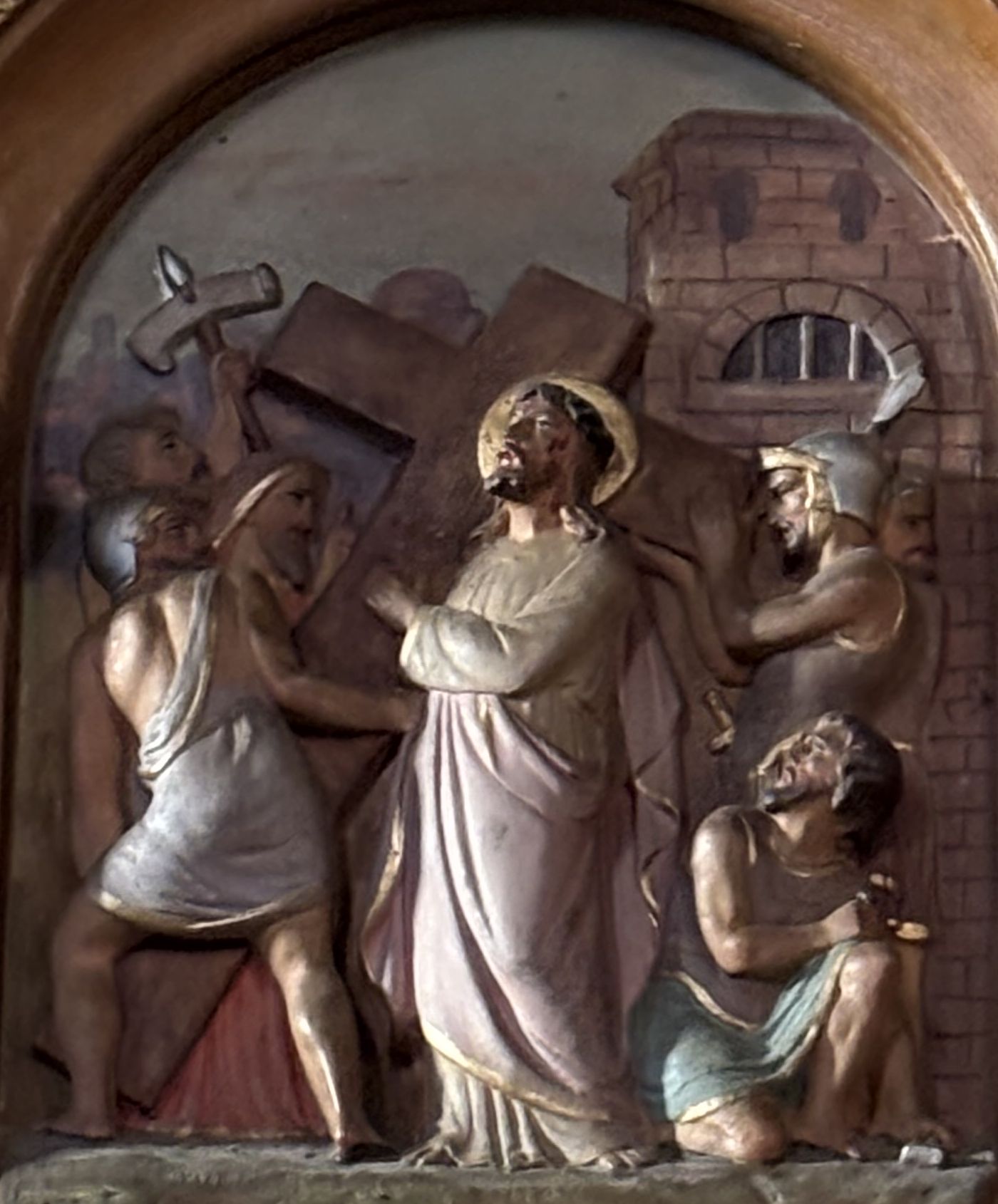 5e station : Simon de Cyrène aide Jésus à porter sa croix. |