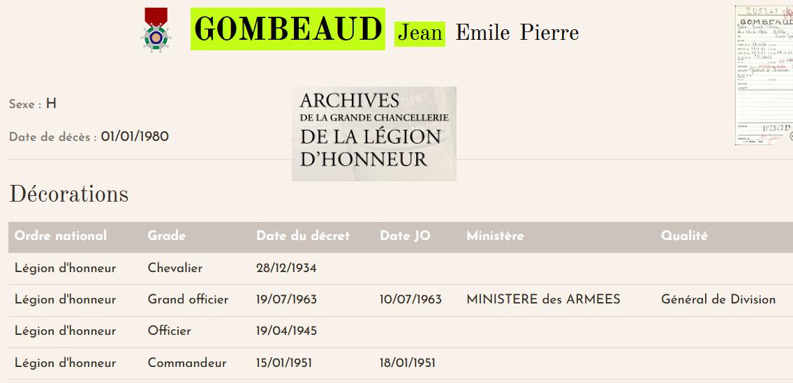 sur cette tombe de deux palmes de la Légion d'Honneur