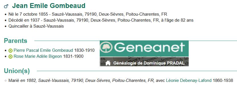 ancètres (GOMBEAUD Pierre 1830/1910 et Rose BIGEAU