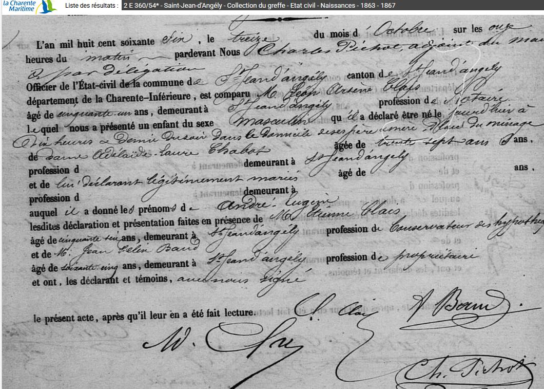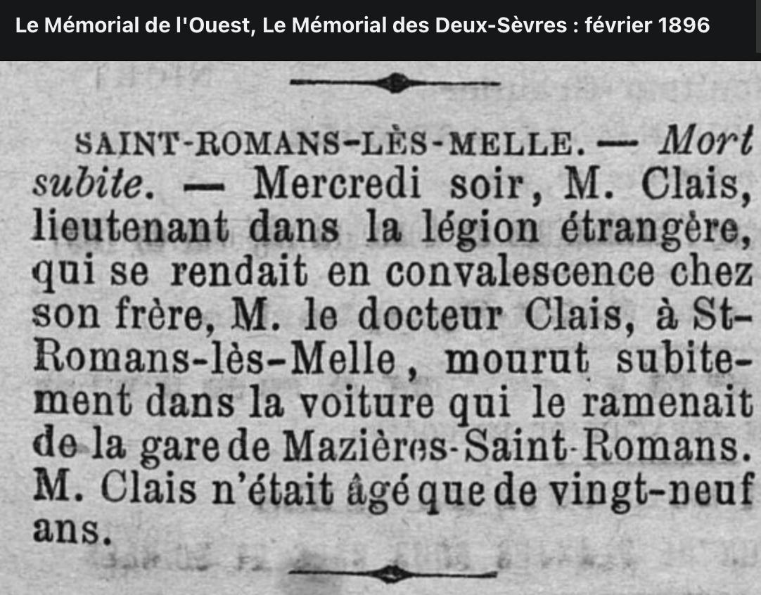CLAIS André Eugène DCD le 21/01/1896 à ST ROMANS |